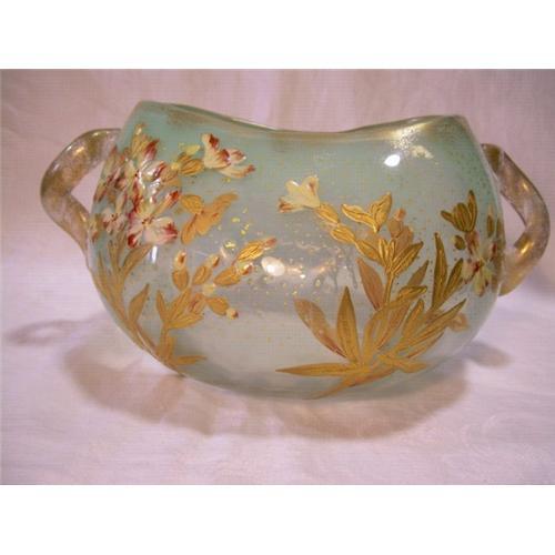 <tr><td>Title:Czech Moser Enamel Gold Leaf Glass Vase</td></tr>