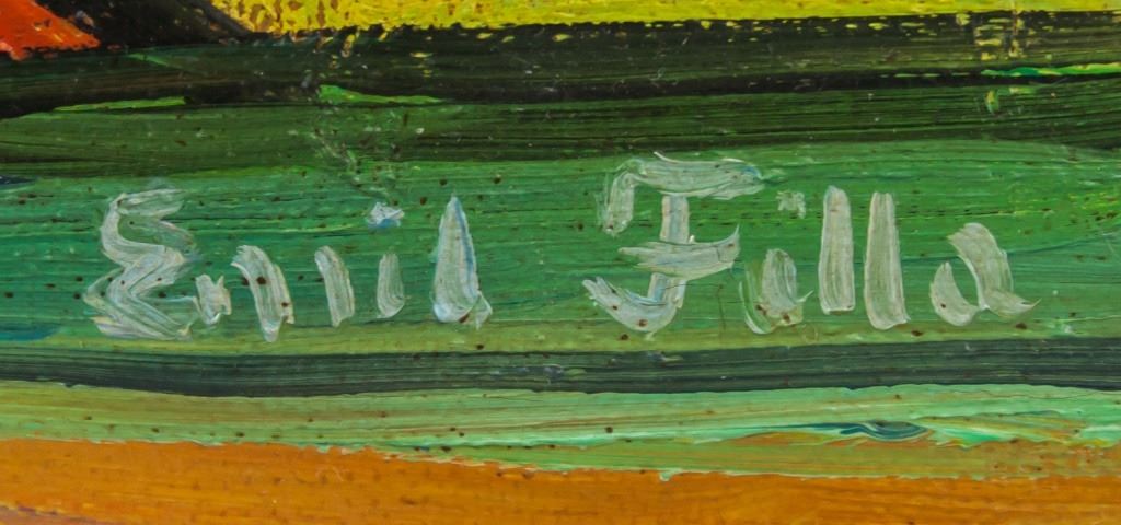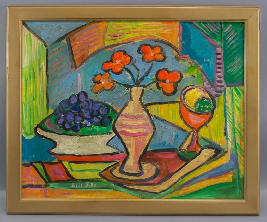 Oil on canvas, framed. Featuring still-life of a vase of flowers and a bowl of grapes. Signed "Emil Filla" to the bottom left. Canvas size: 39 x 49 cm (15.5 x 19.3 in) Frame size: 46 x 56 cm (18 x 23 inch).