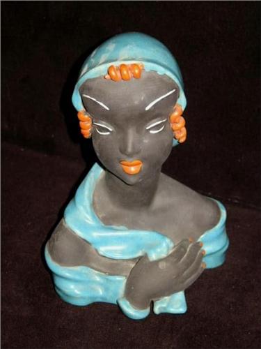 Czech Pottery, Lady's Head with FBS marking, 9" tall.
