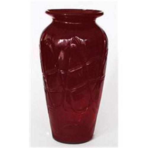 <tr><td>Title:Czech Ruby Red Glass Hand or Mold Blown Vase</td></tr>