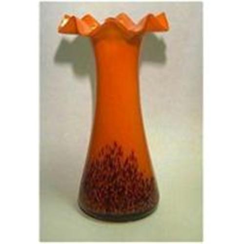 Unsigned Czech Vase that is 5 3/4"" tall with a frilled top. Brown on orange. Priced for quick sale.