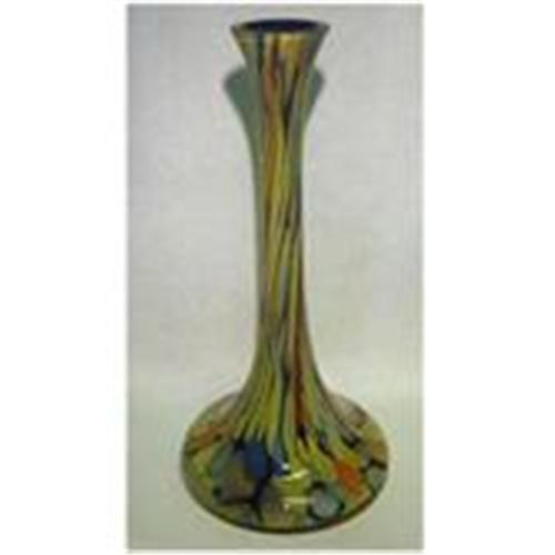 Czech Vase that is unsigned. It has a tall, very thin neck. The glass is triple cased. Interior lining of cobalt, outer lining of clear glass and inner layer of multi colored glass. 8 1/2"" tall. Pergect condition. Very attractive.