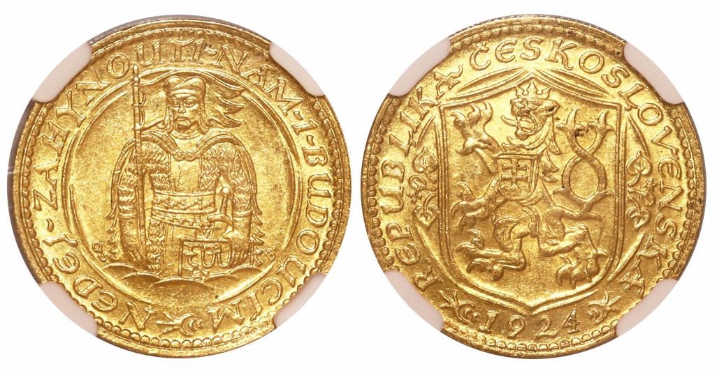 Czechoslovakia, 1 dukat, 1924, encapsulated NGC MS 62.