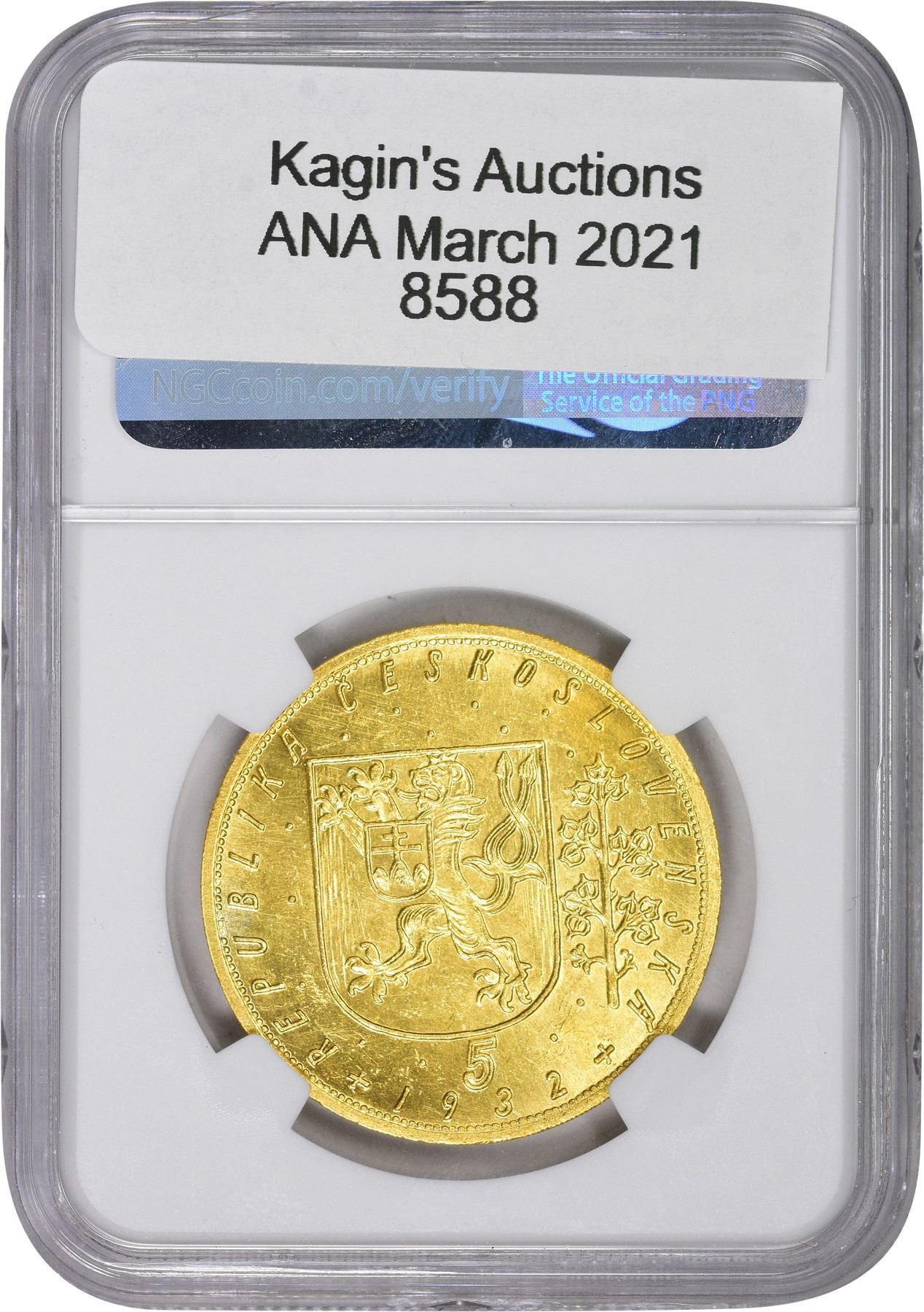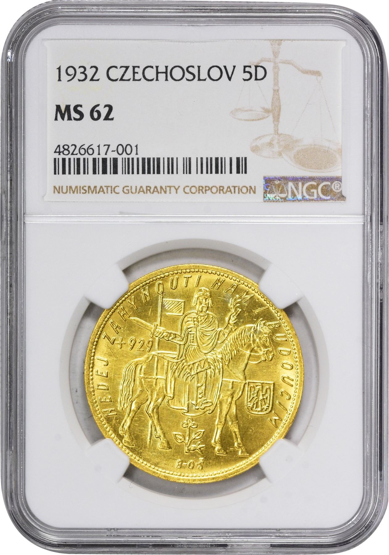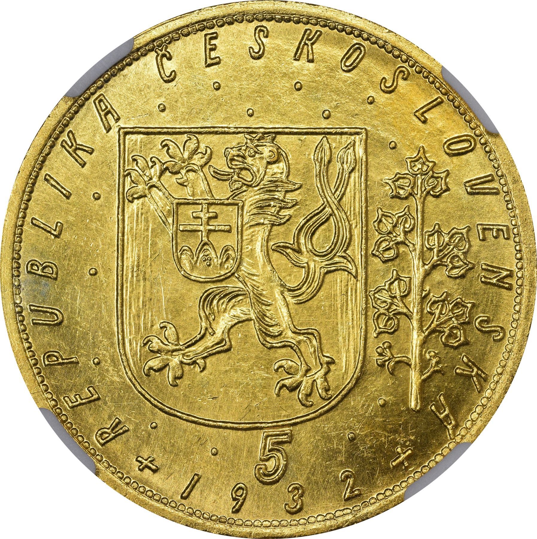 Title: Czechoslovakia. 1932 Gold 5 Dukatu. KM-13. MS-62 NGC.