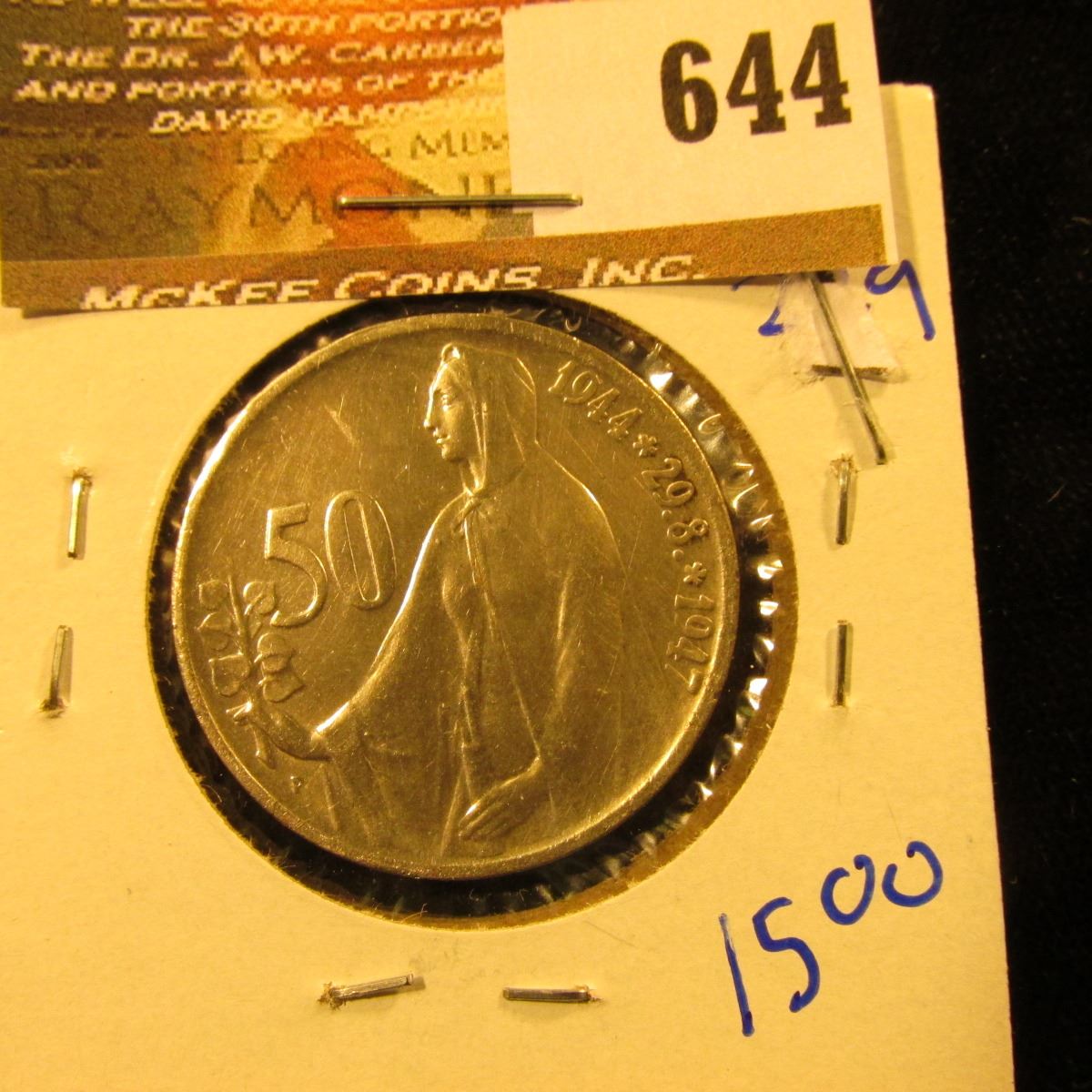 Czechoslovakia 50 Korun Coin Circa 1944-1947