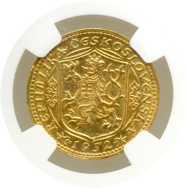 Czechoslovakia. Ducat, 1932. Fr-2; KM-8. Half-length figure of St. Wenceslas. Excessive surface hairlines. NGC graded Uncirculated, Details.