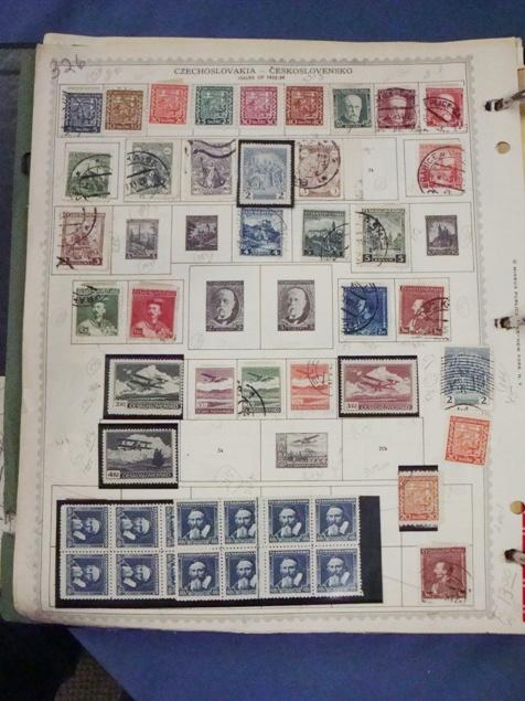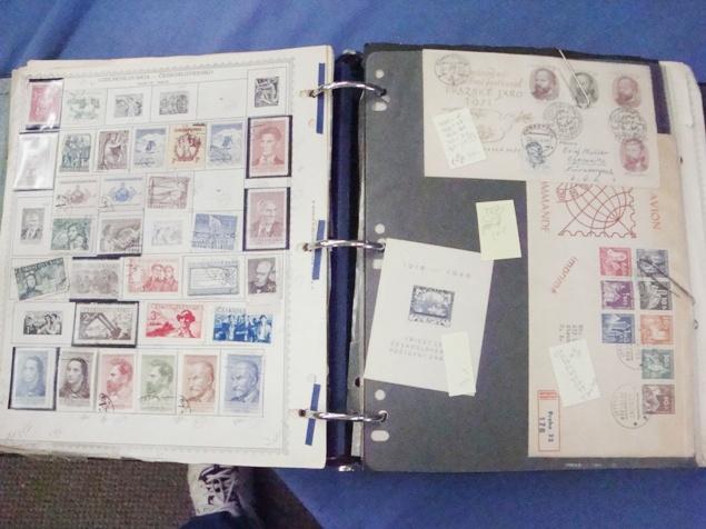 Many (100) stamps, mostly used along with some covers in a somewhat messy album to about 1970 on a variety of pages. Useful $1-10 material throughout with good postally used stamps from the 50-70's era. Some scattered better. Needs a look through. Est.$15
