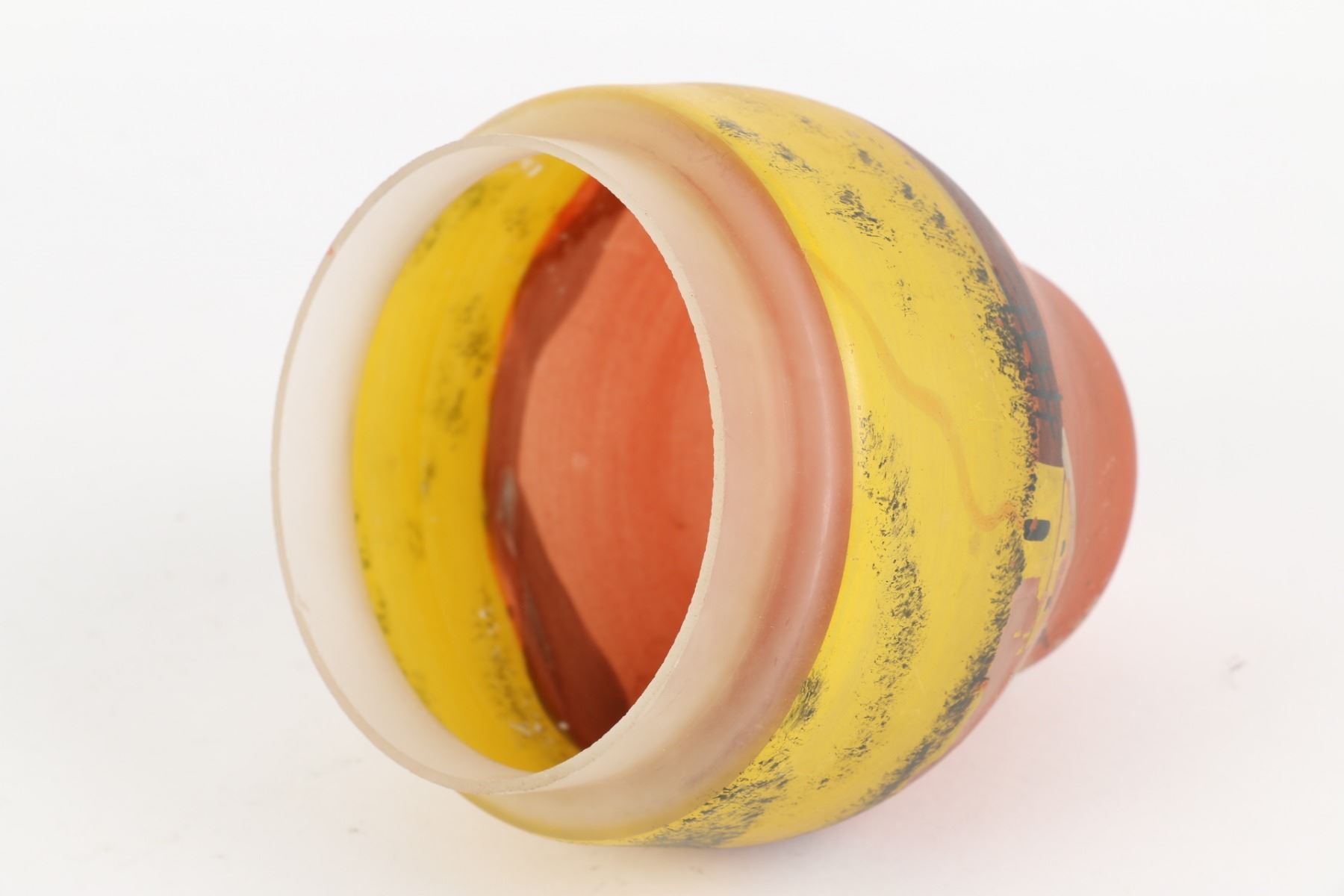 Lot 487 - Hand painting of a farmhouse and meadow on earth tone frosted glass. Marked, "Czecho Made In Slovakia" on bottom. 12.5" x 5". Missing electrical plug end. $200-300.