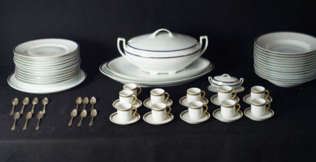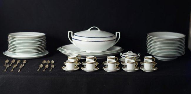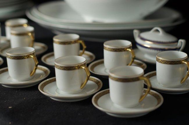 serves approx 12 plus serving pieces and demitasse cups - plates, platters, tureen
