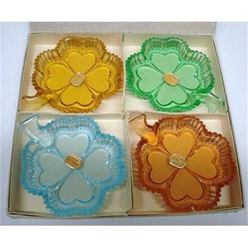 VERY PRETTY, NEVER USED - SET OF FOUR COLORFUL SMALL NUT DISHES, EACH HAS A ORIGINAL STICKER READING: BOHEMIA GLASS, MADE IN CZECHOSLOVAKIA - as per images - Excellent condition - US Buyer to pay 9.00 for shipping plus insurance.THANKS.