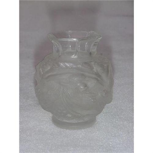 Molded glass frosted vase. 3 1/4'' tall x 2 3/4'' in diameter. Unmarked. Probably Czechoslovakian.