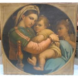 D'Après RAPHAEL/After Raphael. "The Madonna with the Chair". Huile sur toile. École italienne. Oil on canvas. Italian School. 29" x 29" - 73.7cm x 73.7cm. $800/1200