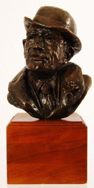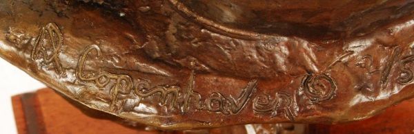 D. Copenhaver Bronze sculpture. #2/5. "Victorian Dandy." Walnut base. Bronze 11" tall. Base another 5".