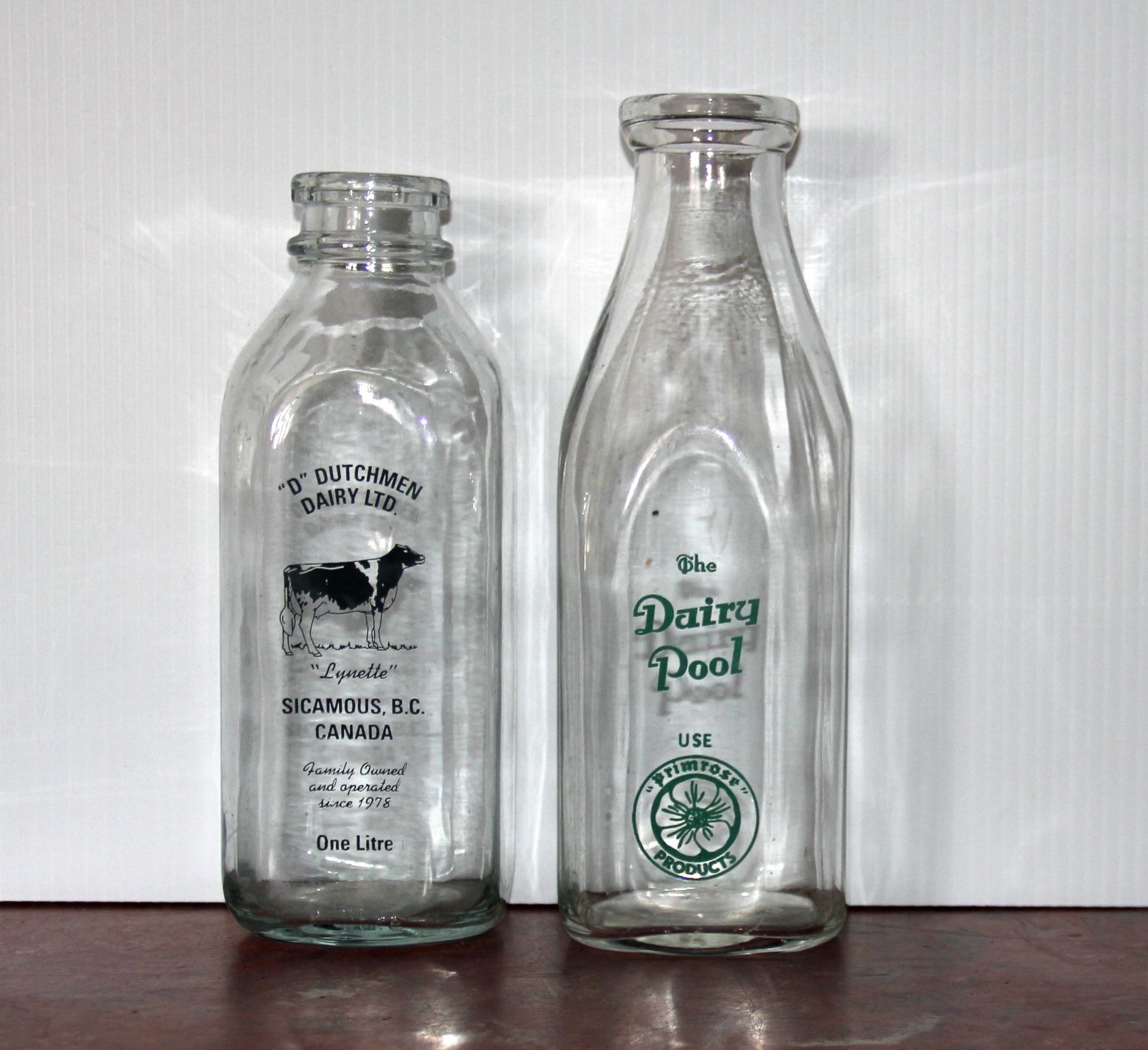 D Dutchmen Dairy Ltd, Sicamous B.C. and Dairly Pool Milk Bottles