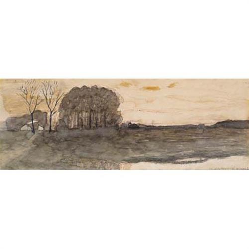 7661 D. Hale Watercolor Landscape Signed lower right 4 1/2" x 15"