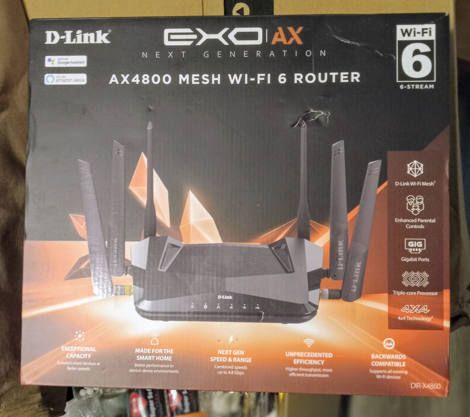 D-Link AX4800 mesh WiFi 6 Router. With enhanced parental controls, triple core processor, gigabit ports and 4x4 technology.