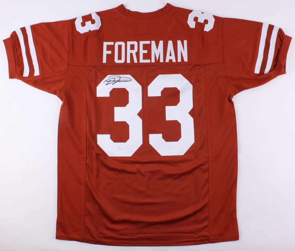 Custom on-field style jersey. Everything sewn on, size XL. Hand-signed in black felt-tip pen by D'Onta Foreman.