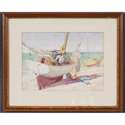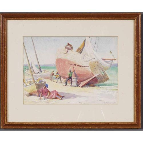 D. PULLINGER (pair), 8"x11" watercolors, Carribean Boat Repair, CONDITION REPORT: foxing PACKING AND SHIPPING provided by Fairfield Auction (within the Continental U.S. excluding insurance- which will be required and added) $40