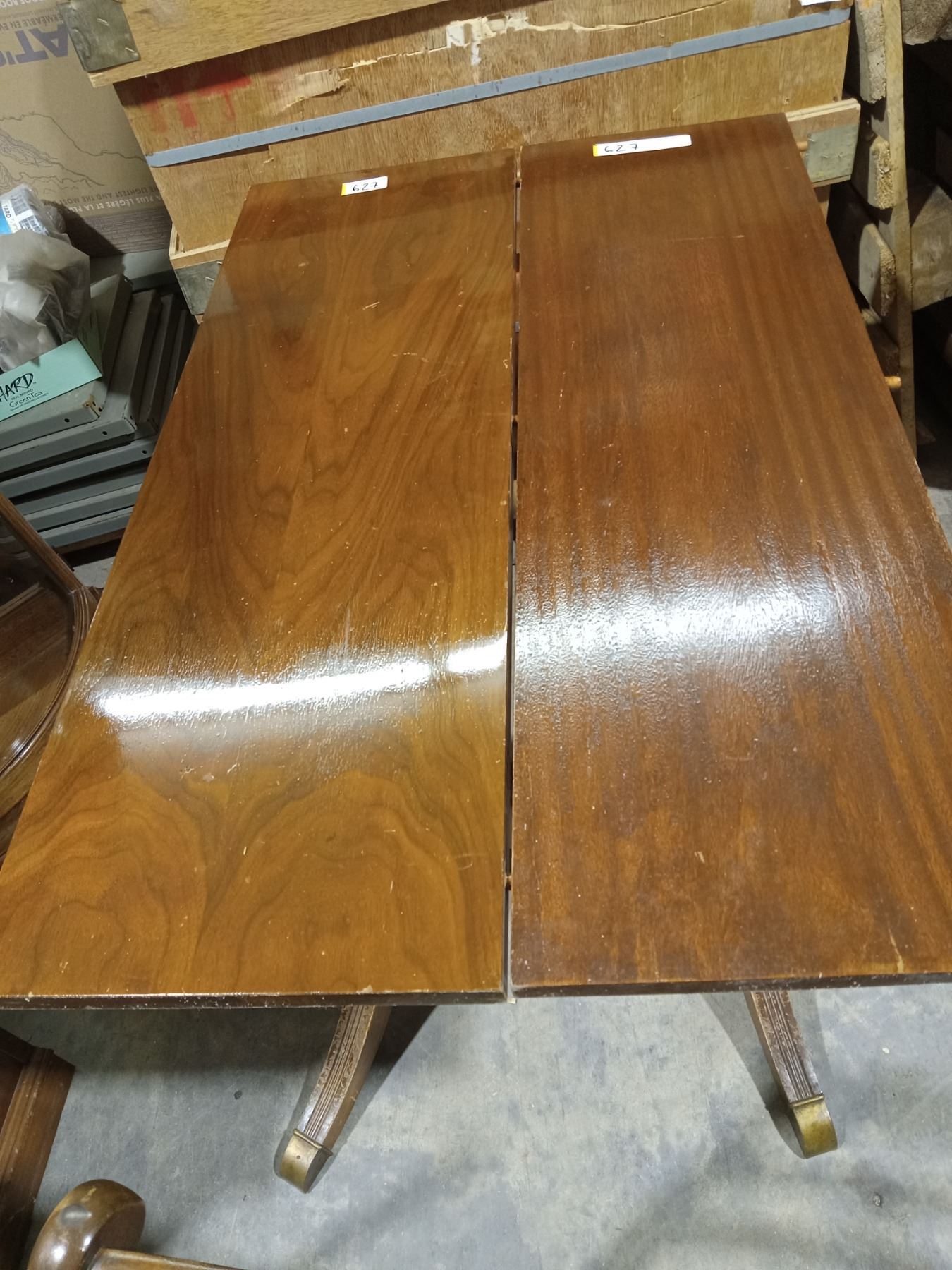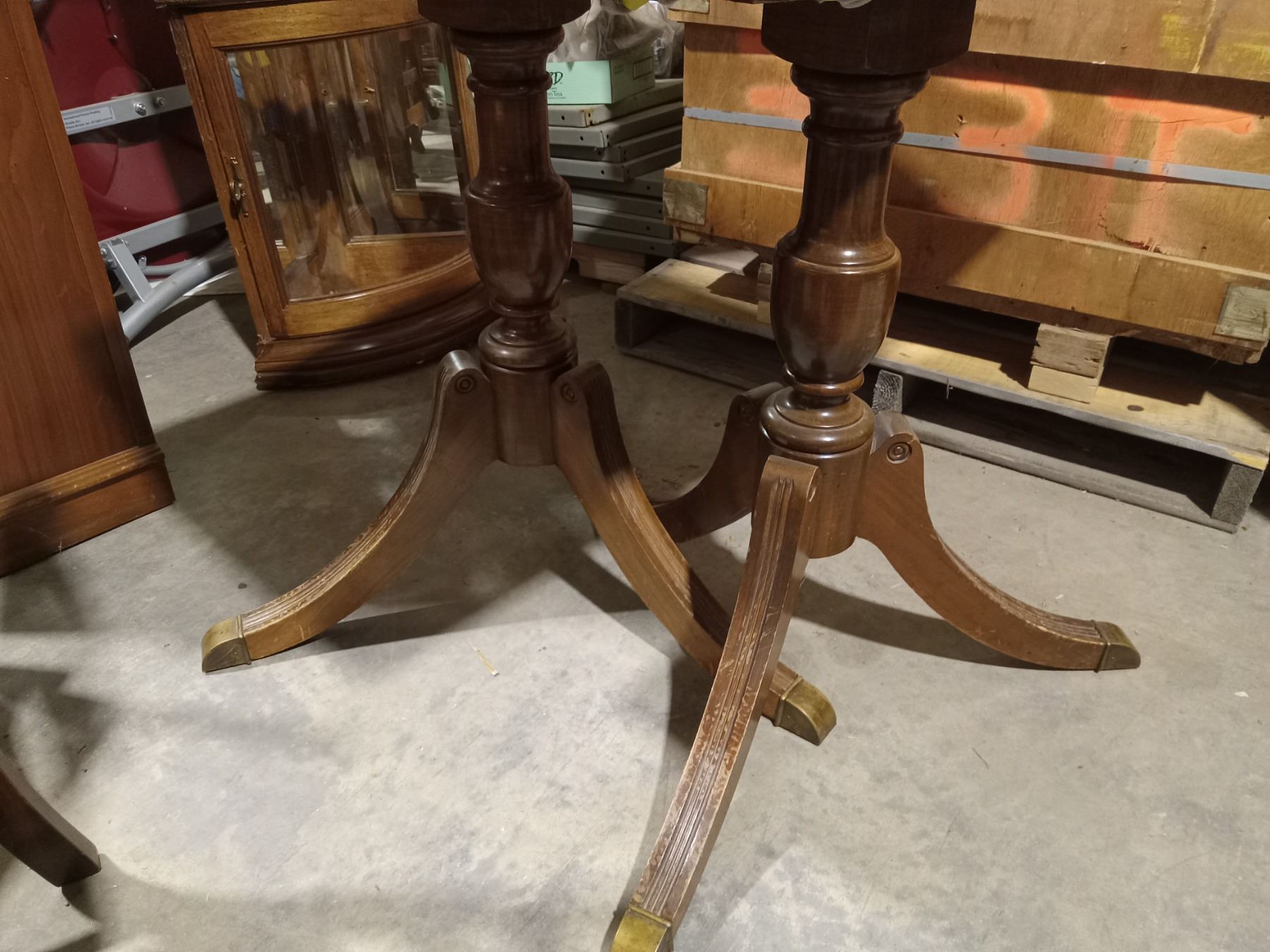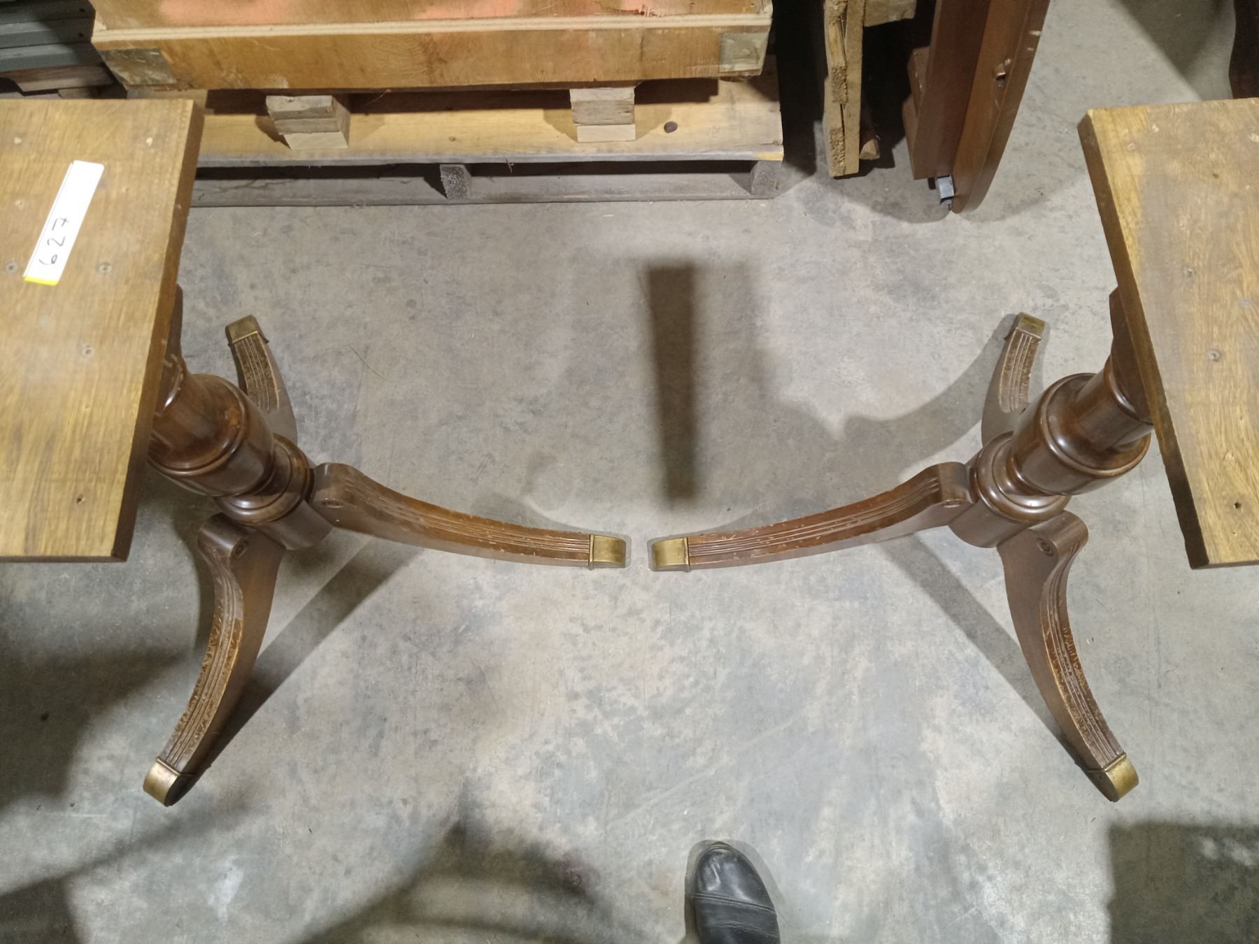 D.R. TABLE & CHAIRS 9-PC SET - DOUBLE PEDESTAL SCROLLED LEGS, BRASS-TIPPED FEET. 6-CHAIRS c/w 2-LEAF EXTENSIONS.