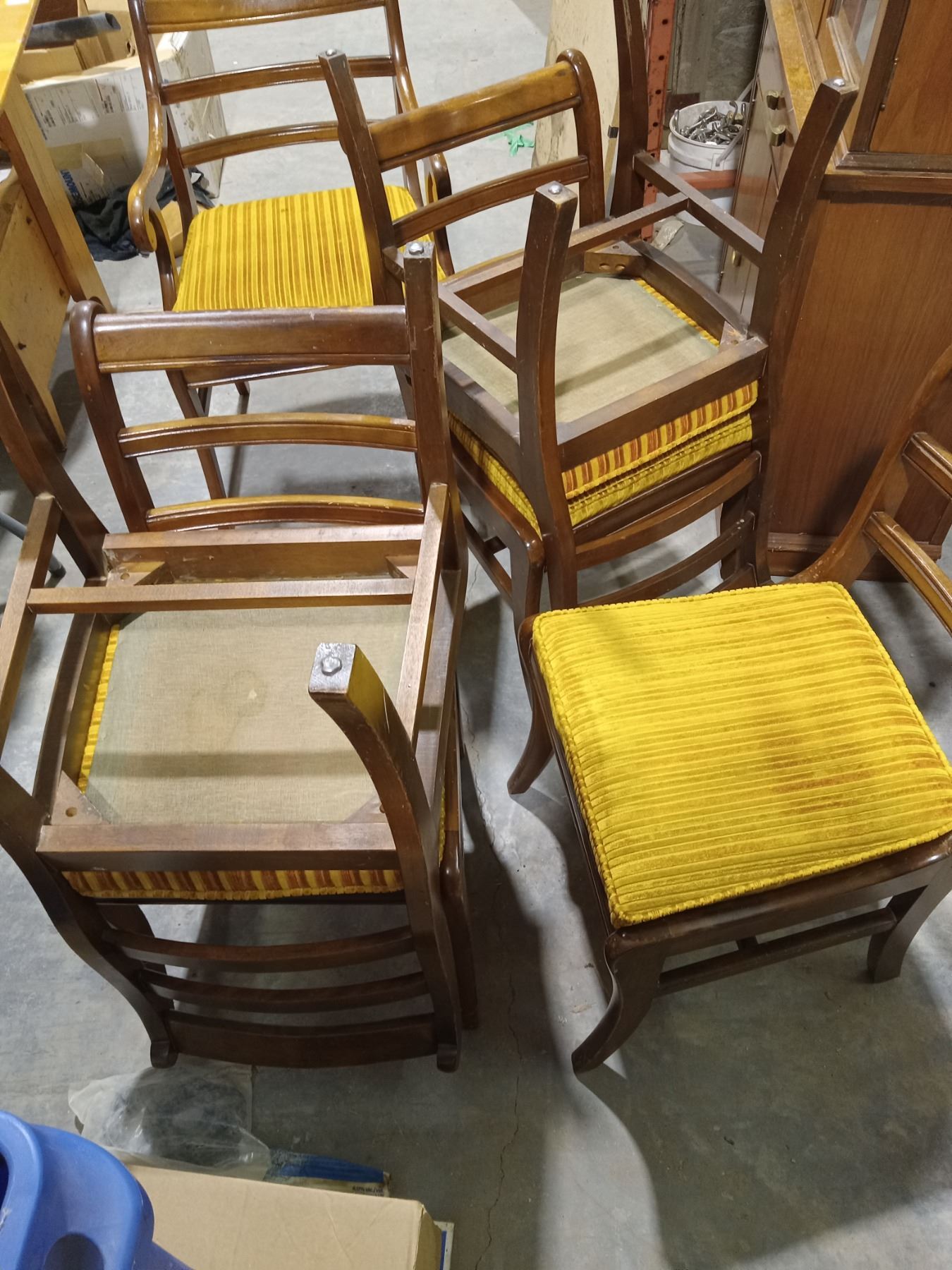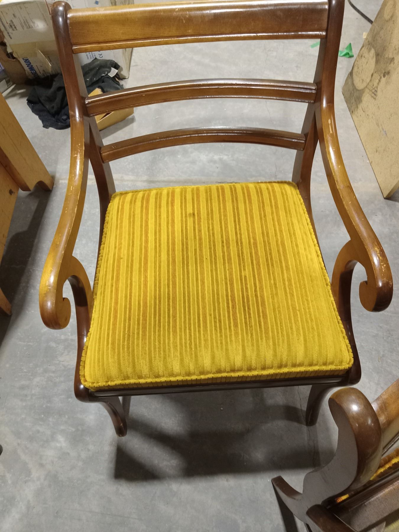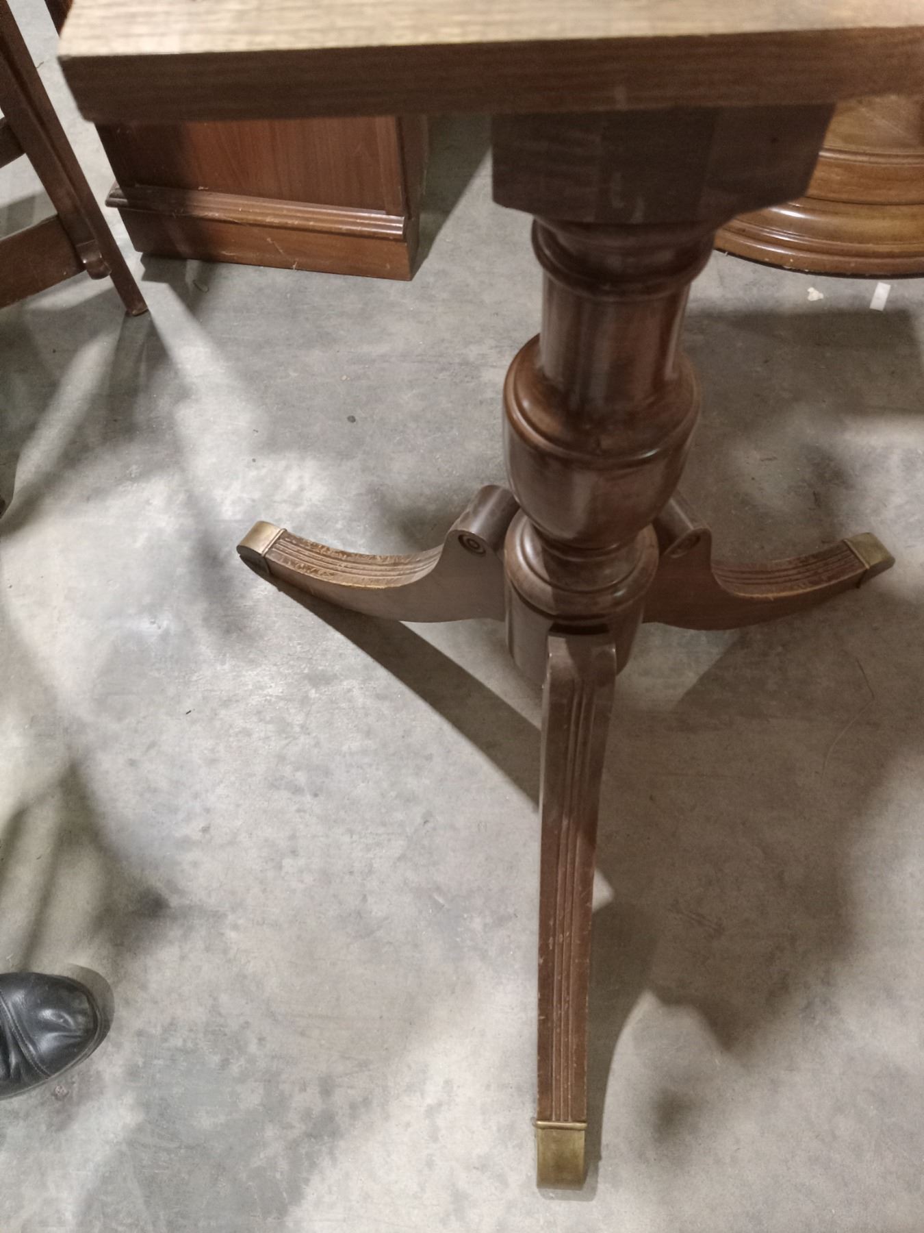 D.R. TABLE & CHAIRS 9-PC SET - DOUBLE PEDESTAL SCROLLED LEGS, BRASS-TIPPED FEET. 6-CHAIRS c/w 2-LEAF EXTENSIONS.