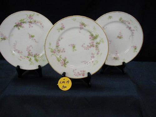 D & C LIMOGES (3) 8 1/8in PLATE PINK BELL FLORAL EXCELLENT, 3 PC