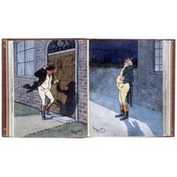 (D'après Charles DICKENS).- MONTRILEUX, J. de.- " Gentlemen". Aquarelles de Harry Eliott. Paris, Auguste Blaizot, 1909. In-8° carré. Relié par René Kieffer : plein maroquin janséniste rouge, dos à nerfs, doublures de soie jaune paille à impression florale serties de filets, fleurons de coins et de cadres de maroq. rouge, gardes de même soie, doubles gardes de papier marbré dans le ton, montage sur onglets, tranches dorées à témoins, couv. et dos cons.