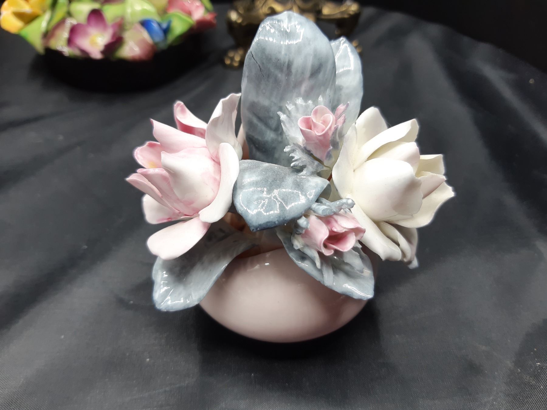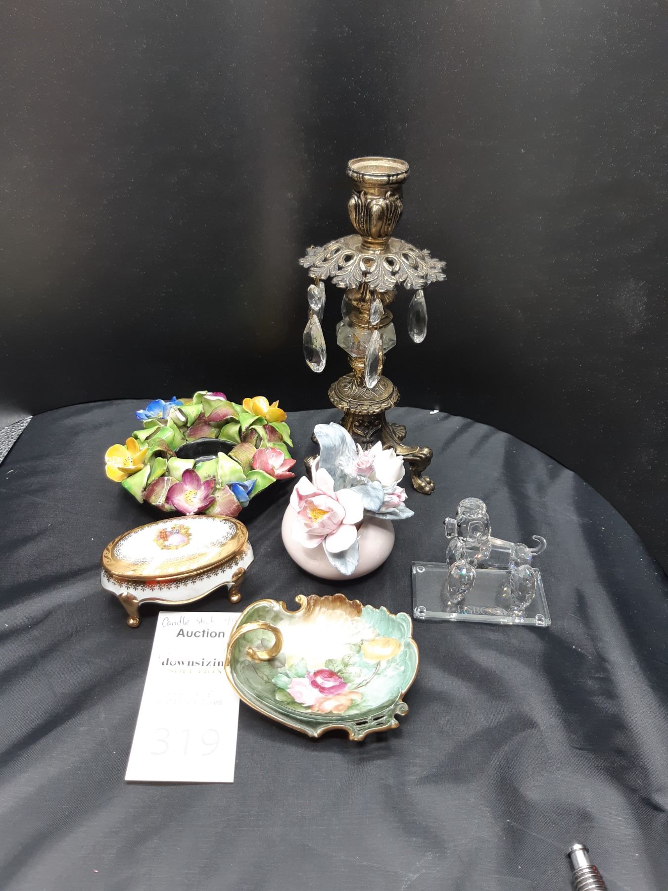 Porcelain florals, 9" candlestick, glass poodle and small porcelain dish. Bring packing materials and pickup at 9am