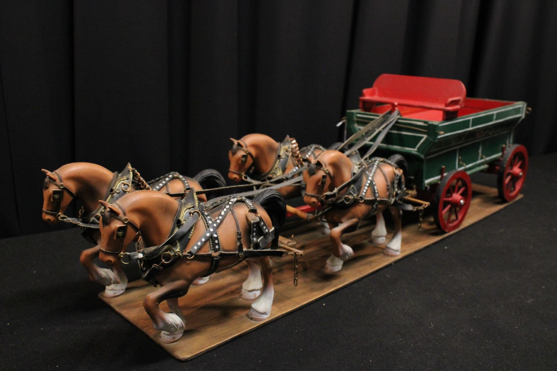 Freight wagon pulled by a team of four horses. (horses are plastic)
