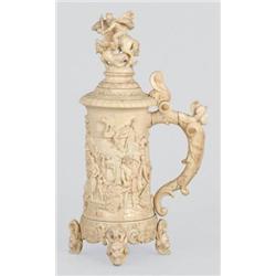 német, 19. sz., elefántcsont, római történelmi jelenetekkel, m: 37 cm