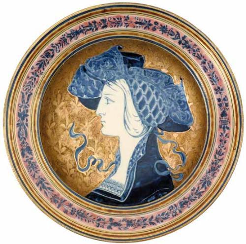 Dísztál noi portréval, Zsolnay, 1880-as