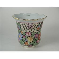 Porcelán, henger alakú kifelé hajló peremu test, áttört festett virágmintás díszítéssel, Jelzett Herend, 1900-as évek, M.: 12 cm