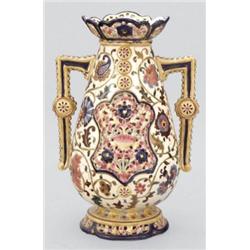 Fischer Ignác vagy Zsolnay - gyár, 1880 körül, áttört, festett, aranyozott fehércserép, restaurált, m: 30 cm, restaurált