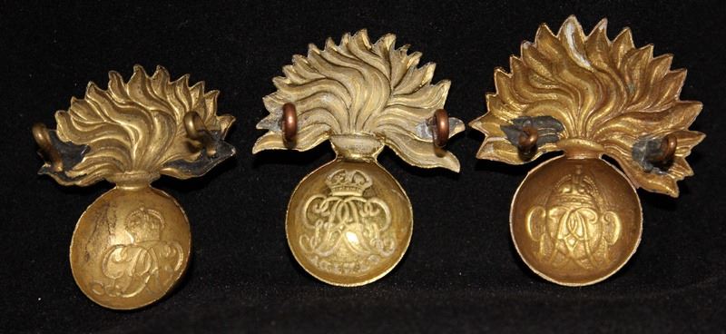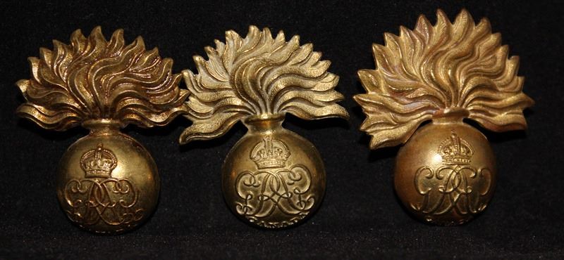 All brass flaming grenade design, Kings Crown, all different strikings, lug fasteners, nice. Lot of 3. Mazeas M6. 1942 issue.