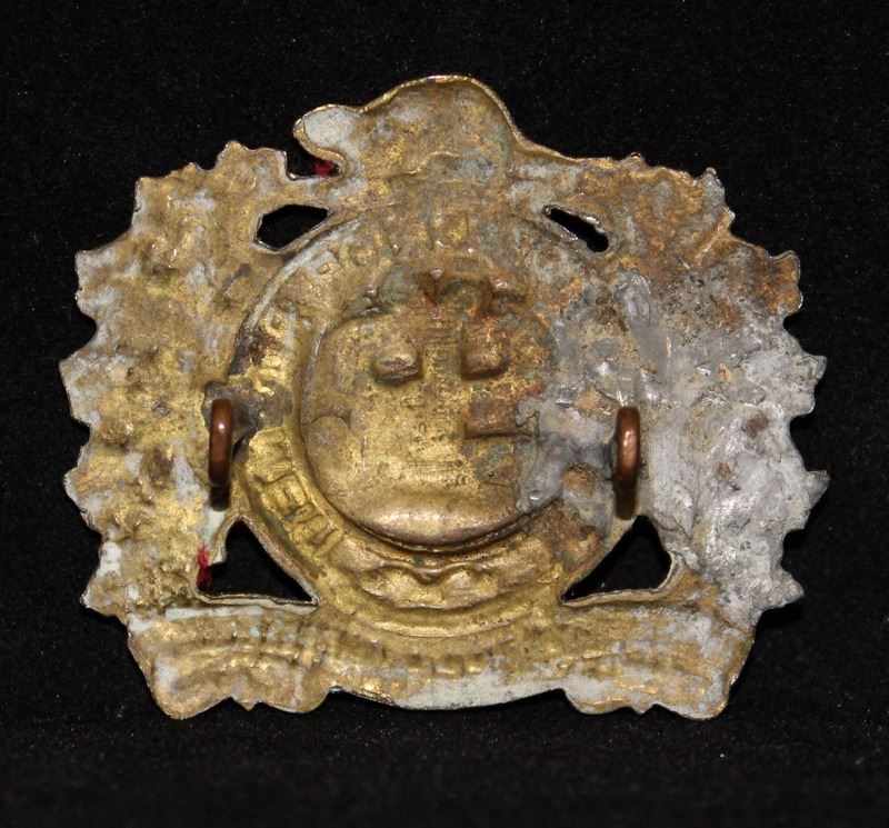 Brass base metal with white overlay, lug fasteners one of which has been replaced. Nice stamping. Mazeas M143. 1922 issue.