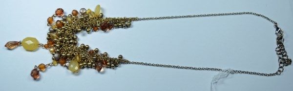 DAINTY BEADED CHAIN NECKLACE WITH SOFT TONES OF BROWN AND YELLOW. 10 IN IN LENGTH. Silvertowne is rated as a top company on Proxiblog because of its expert grading.