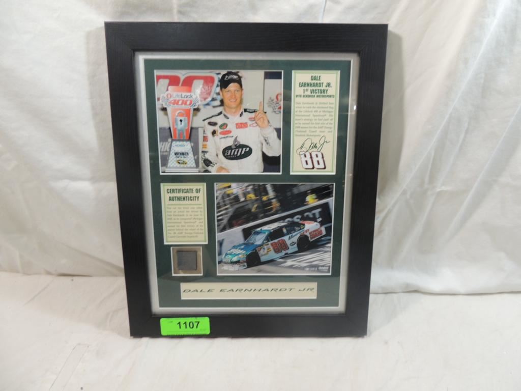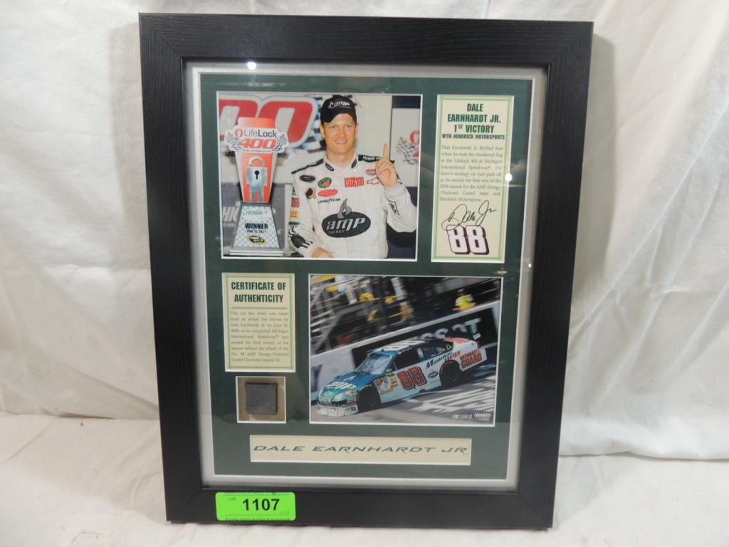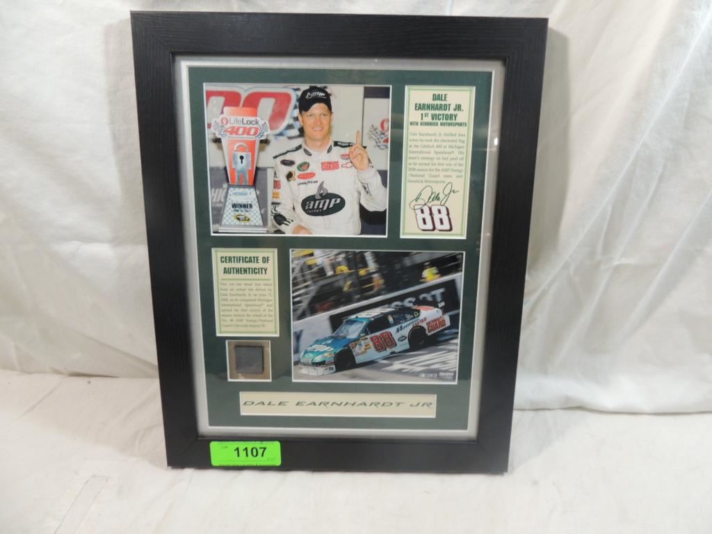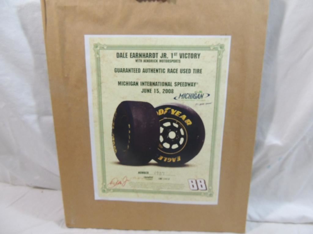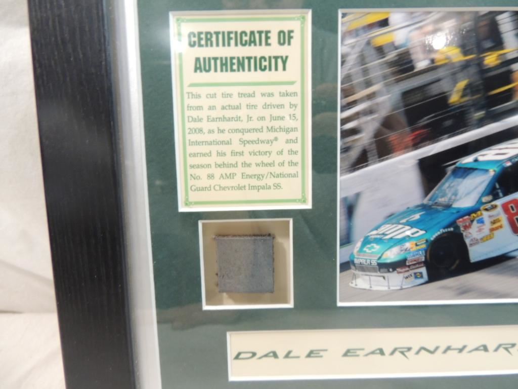 SALE EARNHARDT JR 1ST VICTORY WITH HENDRICK MOTORSPORTS TIRE PIECE MATTED AND FRAMED COMMEMORATIVE PLAQUE, COA INCLUDED, DECORATIVE AS SHOWN SEE PHOTO FOR MORE DETAILS.