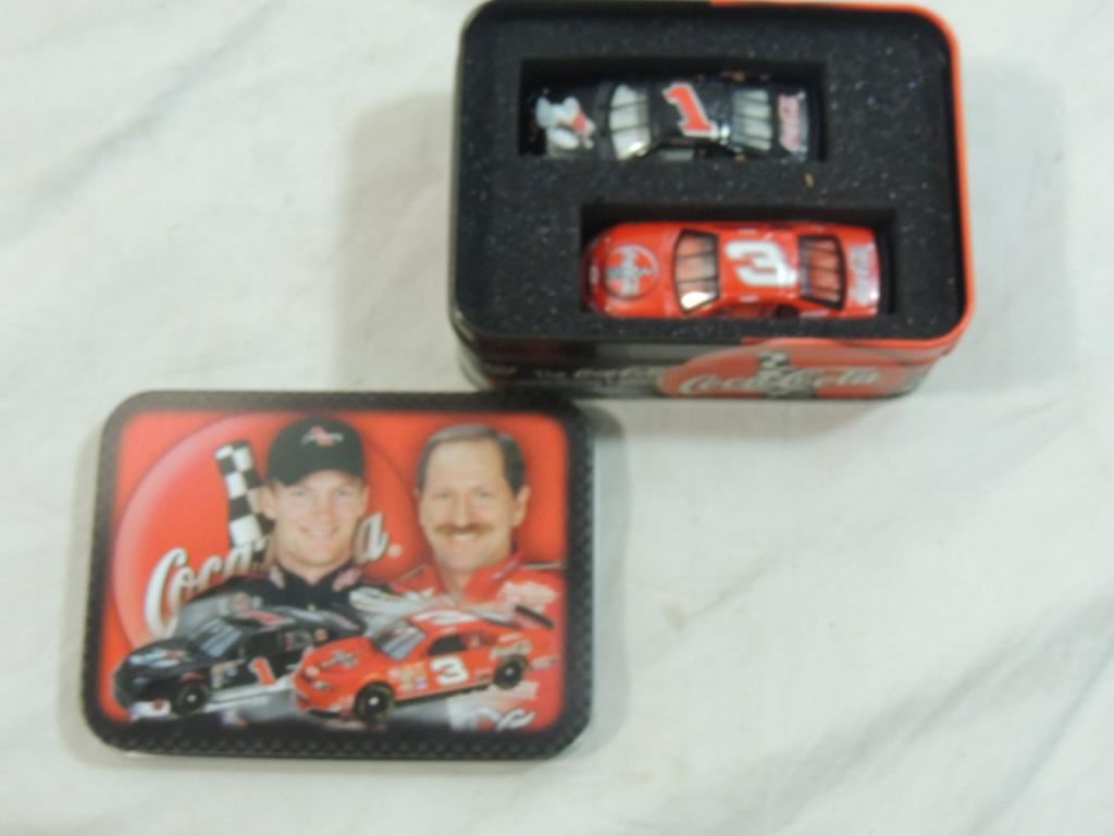 DALE EARNHARDT, DALE EARNHART JR COKE POLAR BEAR 2 CAR TIN SET, COLLECTIBLE TIN, MATCHBOX CARS, COLLECTORS CARS, AS SHOWN SEE PHOTO FOR MORE DETAILS.