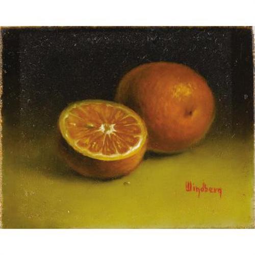 <B>DALHART WINDBERG (b. 1933)</B></I><BR>Untitled Oranges Miniature<BR>Oil on artistboard<BR>1-1/2 x 1-1/2 inches (3.8 x 3.8 cm)<BR>Signed lower right<BR><BR> Provenance:<BR>Acquired from the artist by the present owner<B>Condition Report:</B> Excellent condition. Period frame in excellent condition<BR><BR><b>Shipping:</b> Requires 3rd Party Shipping (<a target="_blank" href="http://www.heritageauctions.com/common/shipping.php">view shipping information</a>)