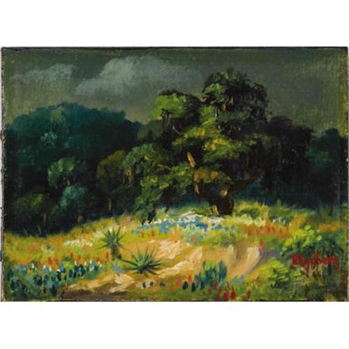 <B>DALHART WINDBERG (b. 1933)</B></I><BR>Untitled Bluebonnet Landscape Miniature<BR>Oil on artistboard<BR>1-3/4 x 2-1/2 inches (4.4 x 6.4 cm)<BR>Signed lower right<BR><BR> Provenance:<BR>Acquired from the artist by the present owner<B>Condition Report:</B> Excellent condition. Period frame in excellent condition.<BR><BR><b>Shipping:</b> Requires 3rd Party Shipping (<a target="_blank" href="http://www.heritageauctions.com/common/shipping.php">view shipping information</a>)