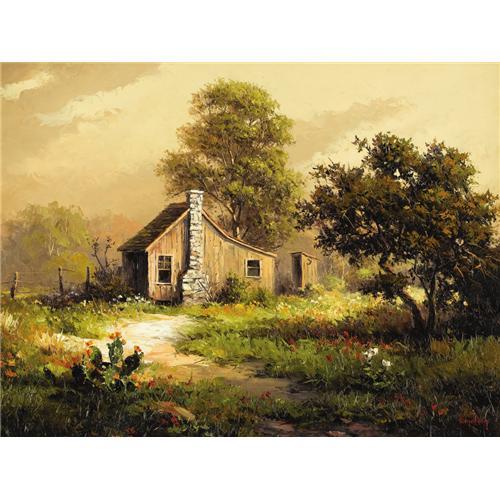 <B>DALHART WINDBERG (b. 1933)</B></I><BR>Untitled<BR>Oil on canvas<BR>18in. x 24in.<BR>Signed lower right<BR><BR>Dalhart Windberg is one of Texas's best known living artists. In 1979, the Texas Legislature named him as the Texas State Artist. This Texas Hill Country scene with a pioneer cabin is executed entirely with a palette knife, which identifies it as an early Windberg painting.<BR><BR> <B>Condition Report:</B> Excellent condition. Period frame in excellent condition.<BR><BR><b>Shipping:</b> Requires 3rd Party Shipping (<a target="_blank" href="http://www.heritageauctions.com/common/shipping.php">view shipping information</a>)