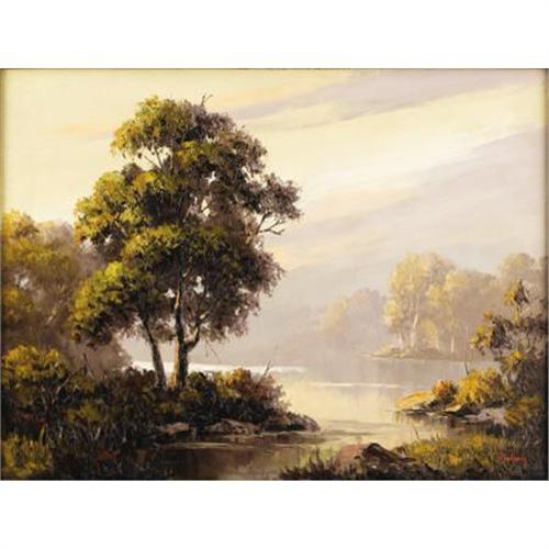 <B>DALHART WINDBERG (b. 1933)</B></I><BR>Untitled Landscape<BR>Oil on canvas<BR>18 x 24 inches (45.7 x 61.0 cm)<BR>Signed lower right<BR><BR> Proficient in two techniques, this painting is an excellent example of Windberg's palette-knife technique. Windberg is a romantic and depicts the world not as it exists, but as we would like it to be; a world in natural harmony, peaceful, and serene.<BR><BR>Provenance:<BR>Acquired from the artist by the present owner<B>Condition Report:</B> Excellent condition. Period frame in excellent condition.<BR><BR><b>Shipping:</b> Requires 3rd Party Shipping (<a target="_blank" href="http://www.heritageauctions.com/common/shipping.php">view shipping information</a>)