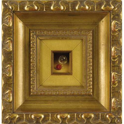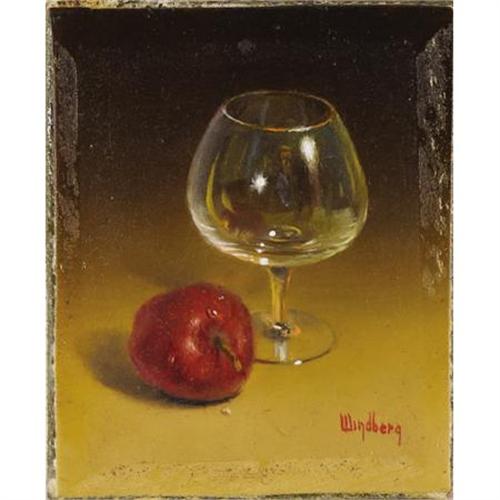 <B>DALHART WINDBERG (b. 1933)</B></I><BR>Untitled Wine Glass and Apple Miniature<BR>Oil on canvasboard<BR>1-1/2 x 1-1/4 inches (3.8 x 3.2 cm)<BR>Signed lower right<BR><BR> Provenance:<BR>Acquired from the artist by the present owner<B>Condition Report:</B> Excellent condition. Period frame in excellent condition.<BR><BR><b>Shipping:</b> Requires 3rd Party Shipping (<a target="_blank" href="http://www.heritageauctions.com/common/shipping.php">view shipping information</a>)