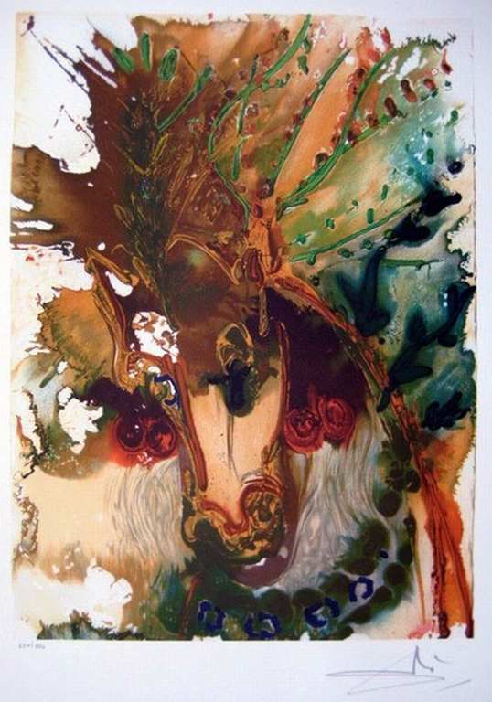 SALVADOR DALI LITHOGRAPH - "BUCEPHALE" FROM THE DALINEAN HORSES SUITE- LIMITED EDITION - ON HEAVY ARCHIVAL PAPER - SIGNED IN THE PLATE - NUMBERED IN PENCIL - PROFESSIONALLY FRAMED AND MATTED - MINT - IMAGE APPX 16" X 12"