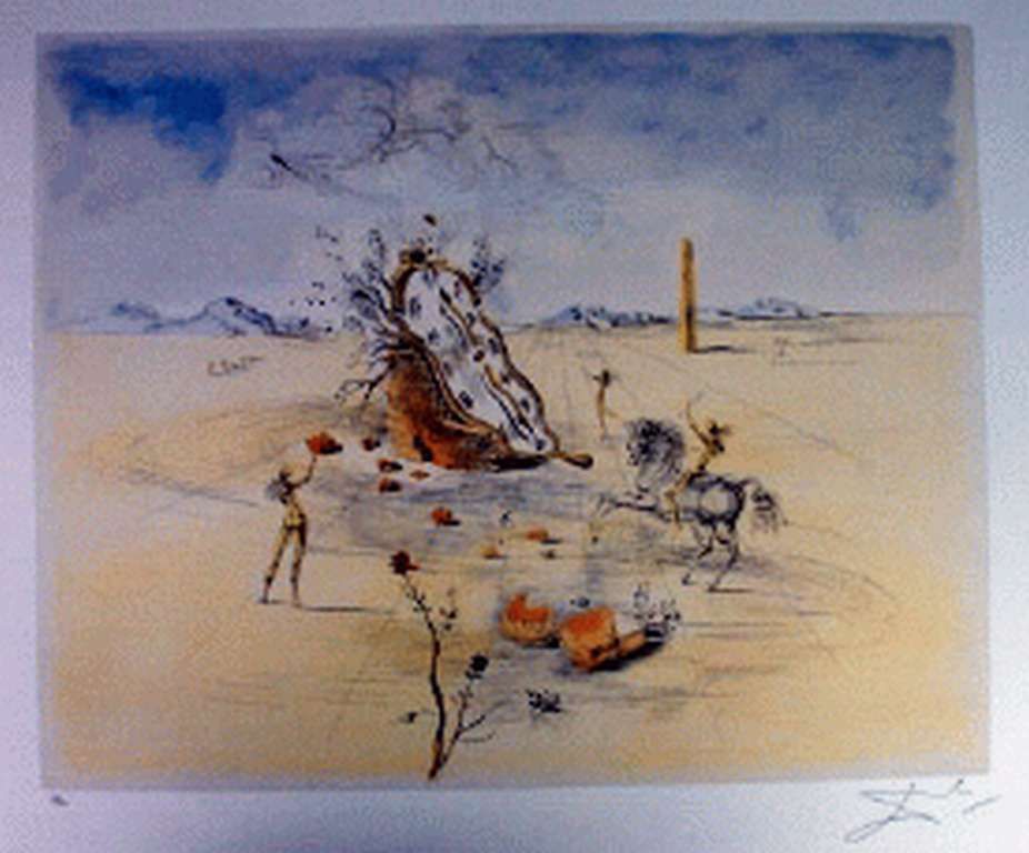 SALVADOR DALI "COSMIC HORSEMAN" LIMITED EDITION LITHOGRAPH - ON HEAVY ARCHIVAL PAPER - SIGNED IN THE PLATE - NUMBERED IN PENCIL - PROFESSIONALLY FRAMED AND MATTED - MINT - 30" X 20" APPX PAGE