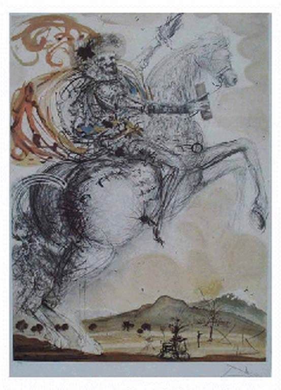 SALVADOR DALI "DON QUIXOTE" LIMITED EDITION LITHOGRAPH - ON HEAVY ARCHIVAL PAPER - SIGNED IN THE PLATE - NUMBERED IN PENCIL - PROFESSIONALLY FRAMED AND MATTED - MINT - 30" X 20" APPX PAGE