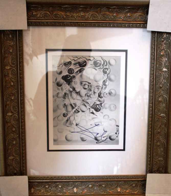 SALVADOR DALI - "GALA SPHERE" - HAND SIGNED LITHOGRAPH (BOOK PLATE) - PROFESSIONALLY FRAMED AND MATTED - MINT CONDITION - FRAMED SIZE APPX 24 1/2 X 20 1/2 - COMES WITH CERTIFICATE OF AUTHENTICITY