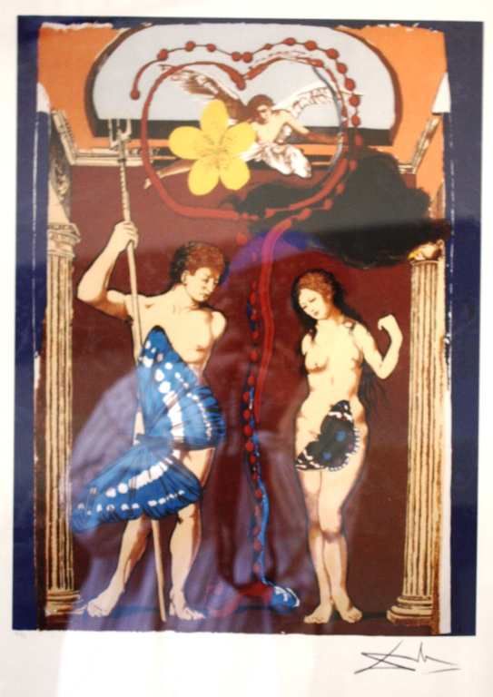 SALVADOR DALI - "ADAM AND EVE"- LTD EDITION LITHOGRAPH - PROFESSIONALLY FRAMED AND MATTED - MINT CONDITION - SIGNED IN THE PLATE - FRAMED SIZE APPX 33 1/2 X 27 1/2