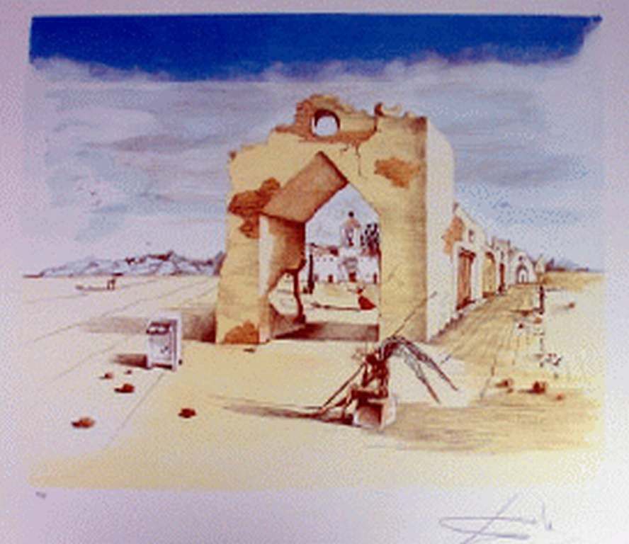 SALVADOR DALI "PARANOIAC VILLAGE" LIMITED EDITION LITHOGRAPH - ON HEAVY ARCHIVAL PAPER - SIGNED IN THE PLATE - NUMBERED IN PENCIL - PROFESSIONALLY FRAMED AND MATTED - MINT - 30" X 20" APPX PAGE