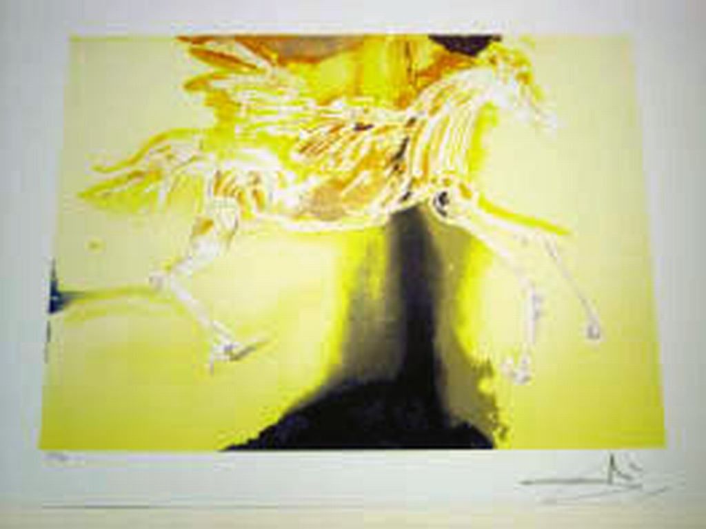 SALVADOR DALI LITHOGRAPH - "PEGASUS" FROM THE DALINEAN HORSES SUITE - LIMITED EDITION - ON HEAVY ARCHIVAL PAPER - SIGNED IN THE PLATE - NUMBERED IN PENCIL - PROFESSIONALLY FRAMED AND MATTED - MINT - IMAGE APPX 16" X 12"