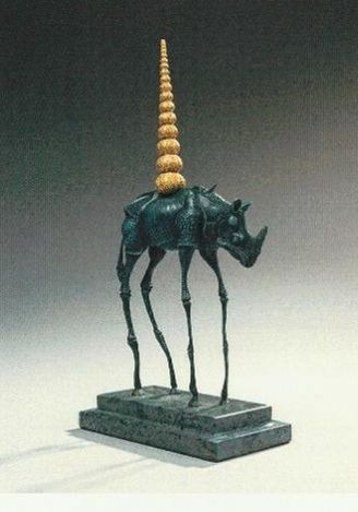 SALVADOR DALI "RHINOCEROS COSMIQUE" ORIGINAL LIMITED EDITION BRONZE - CREATED IN 1981 DURING SALVADOR DALI'S LIFETIME - COMES WITH CERTIFICATE OF AUTHENTICITY FROM ARTCO FRANCE - 35.9 CM